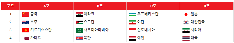 📌 "대한민국 대표팀은 D조에서 일본, 시리아, 태국과 경쟁합니다!"